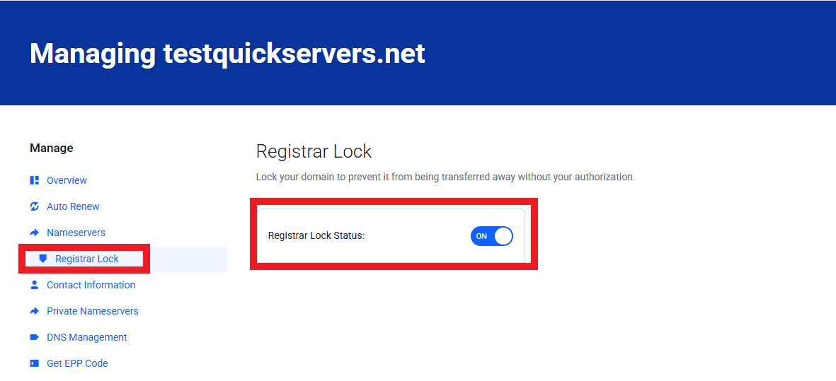 3. How to check your domain lock status in QuickServers