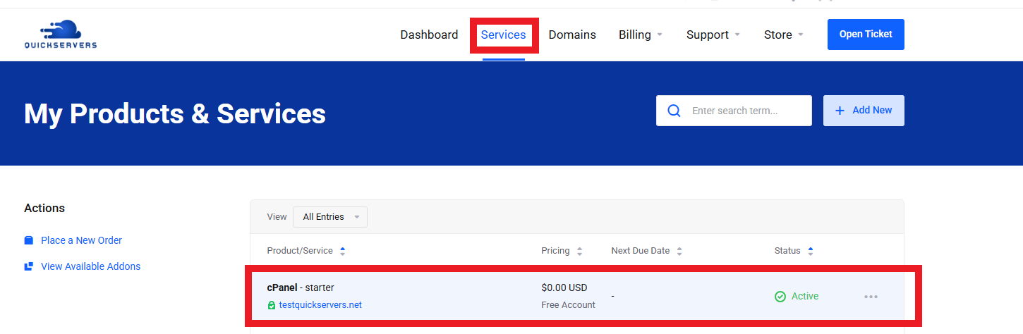 Open “My Domains” in your QuickServers portal.