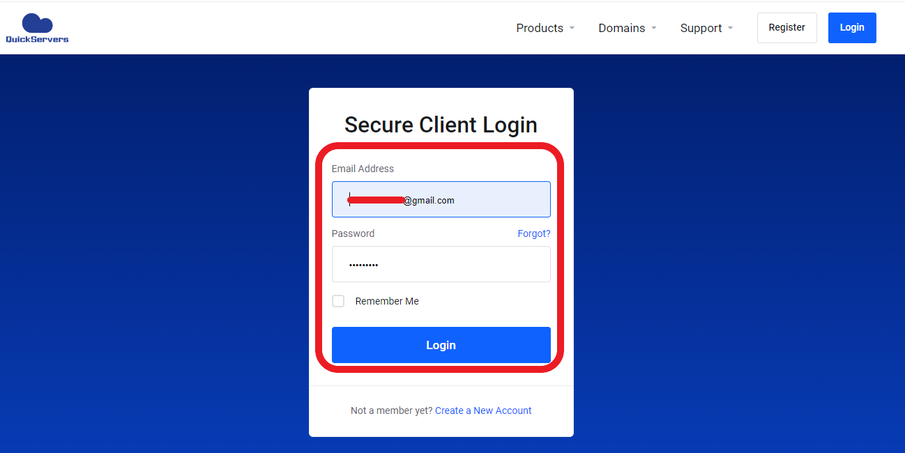 Step 2: Log In to the QuickServers Customer Portal