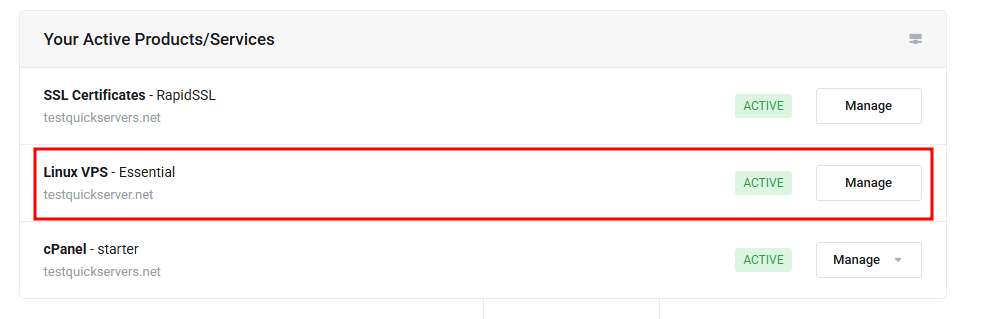 From there, locate the VPS you want to manage.